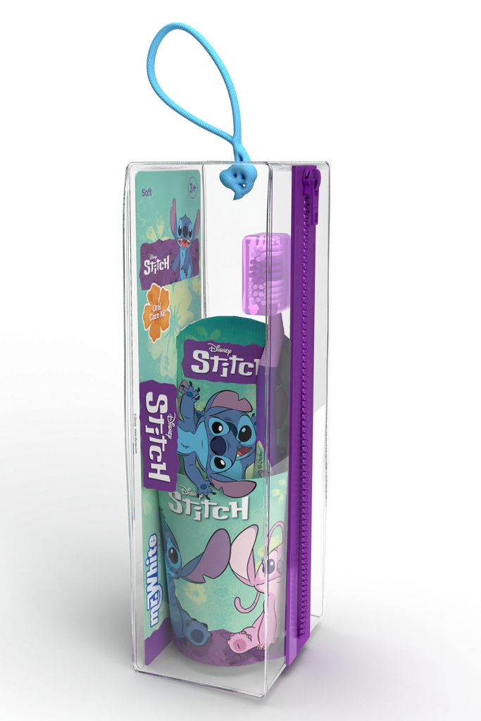 Ένα πρακτικό σετ με: οδοντόβουρτσα με βεντούζα στη βάση, καπάκι βούρτσας, παιδική οδοντόκρεμα με ήπια γεύση μέντας, μέγεθος 75 ml και ποτήρι. Η κεφαλή της βούρτσας είναι ειδικά σχεδιασμένη για να φτάνει σε όλες τις επιφάνειες των δοντιών στο στόμα του παιδιού. Έχει απαλές, στρογγυλεμένες τρίχες για να είναι όσο το δυνατόν πιο απαλό στο σμάλτο των δοντιών και στα ούλα. Η λαβή έχει σχήμα και μέγεθος ώστε το παιδί να μπορεί να το χειρίζεται άνετα και ο ενήλικας να το κρατάει για να μάθει στο παιδί του τον σωστό τρόπο να βουρτσίζει τα δόντια του. Συνιστάται η αλλαγή της οδοντόβουρτσας κάθε 3 μήνες ή όταν οι τρίχες φαίνονται εμφανώς φθαρμένες. Δεν είναι κατάλληλο για παιδιά κάτω των 36 μηνών λόγω της παρουσίας μικρών τμημάτων που μπορούν να καταποθούν.