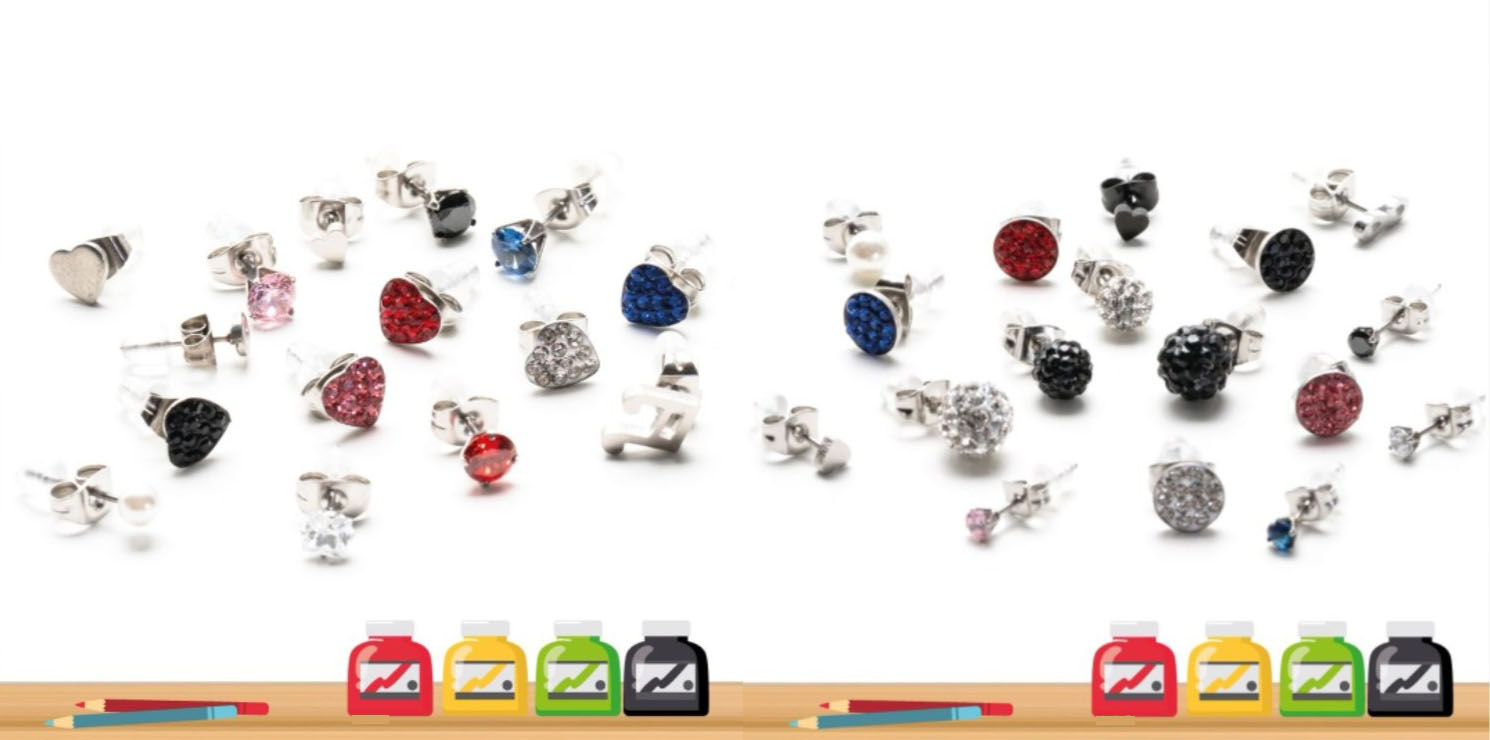 Επιπλέον, τα σκουλαρίκια μας παράγονται με ρύθμιση σε πολύ χαμηλή περιεκτικότητα σε νικέλιο, κάδμιο και μόλυβδο. Είναι ιδανικά για αλλεργικά άτομα. Οι σειρές σκουλαρίκιών μας περιλαμβάνουν πολλά σχέδια, μελετημένα για κάθε ανάγκη, προσωπικό γούστο και εποχή. Στη συλλογή μας θα βρείτε υποαλλεργικά σκουλαρίκια σε διάφορες μορφές και χρώματα, σκουλαρίκια με κρύσταλλα Swarovski, σκουλαρίκια με γυαλί Murano και σκουλαρίκια κρίκους για τις νεότερες πελάτισσες! Ανακαλύψτε επίσης τη μεγάλη μας γκάμα από Οθόνες σκουλαρίκια, όμορφες, χρωματιστές και πάνω απ’ όλα μελετημένες για το φαρμακείο σας, με σεβασμό στα κατάλληλα μεγέθη και σκεπτόμενοι όλες τις ανάγκες των φαρμακοποιών πελατών μας.